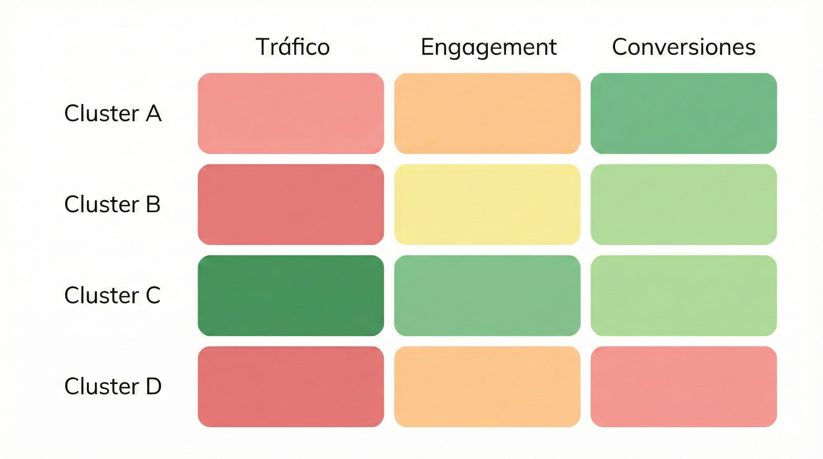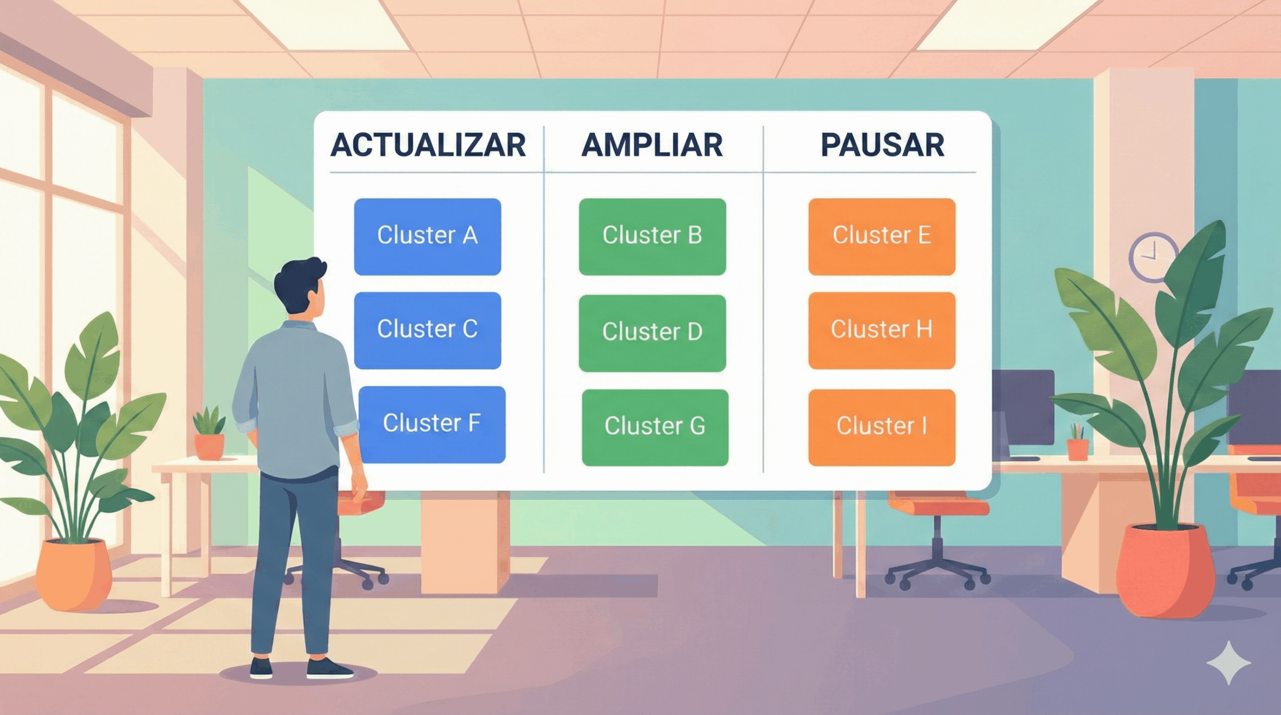 En los siguientes apartados iremos aterrizando cómo ese trabajo previo se transforma en topic clusters y, más adelante, en un calendario editorial que sí tiene sentido de negocio.