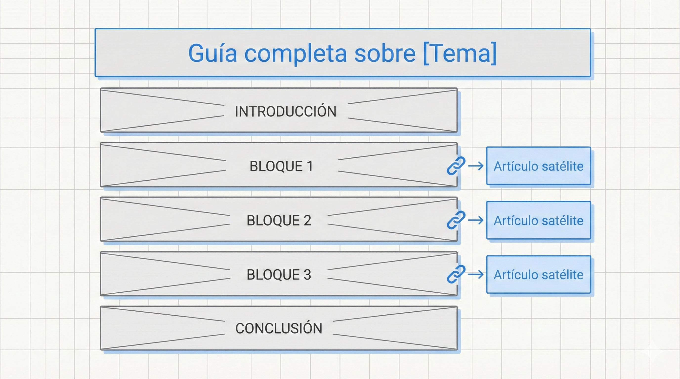Son artículos o recursos que profundizan en subtemas concretos relacionados con ese tema núcleo. Cada satélite ataca una intención de búsqueda específica. - Enlazado interno estratégico