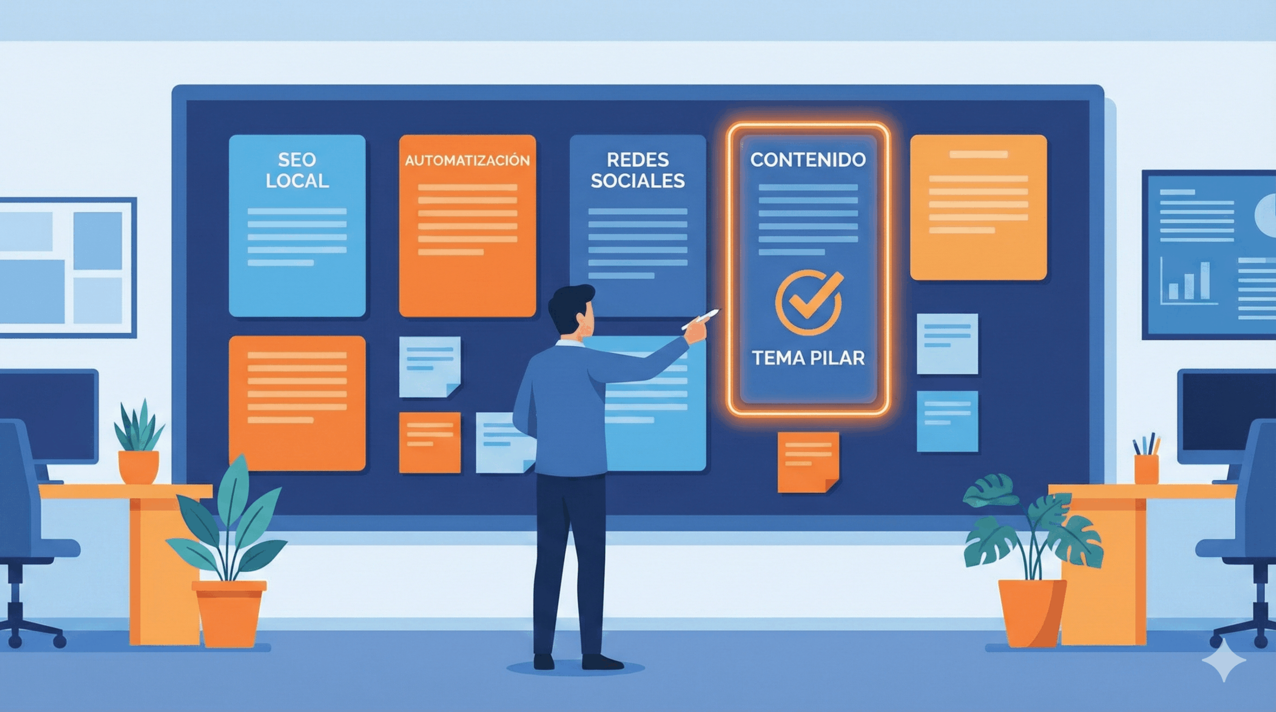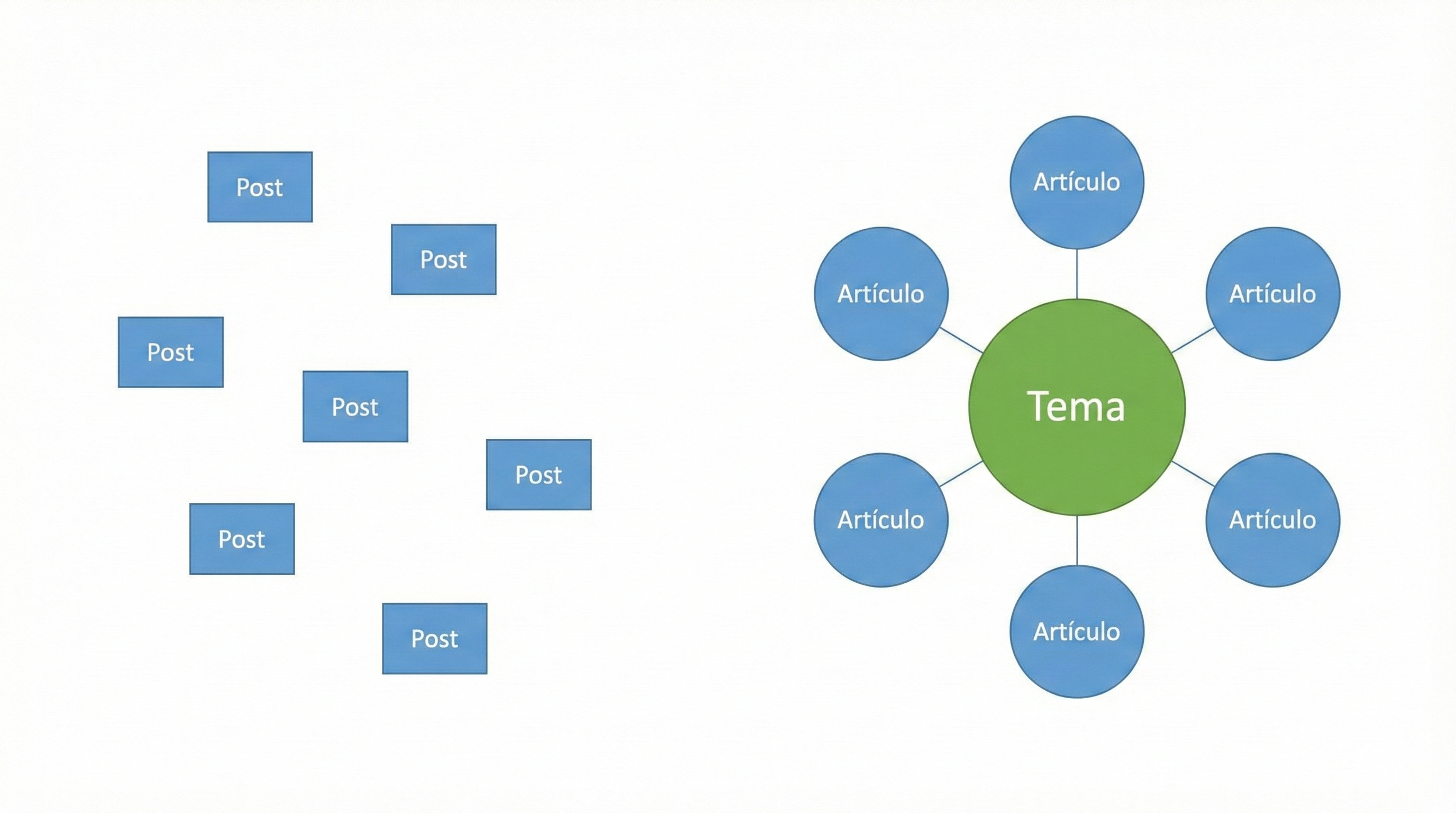 En vez de pensar en posts sueltos, piensas en bloques temáticos organizados alrededor de un tema principal.