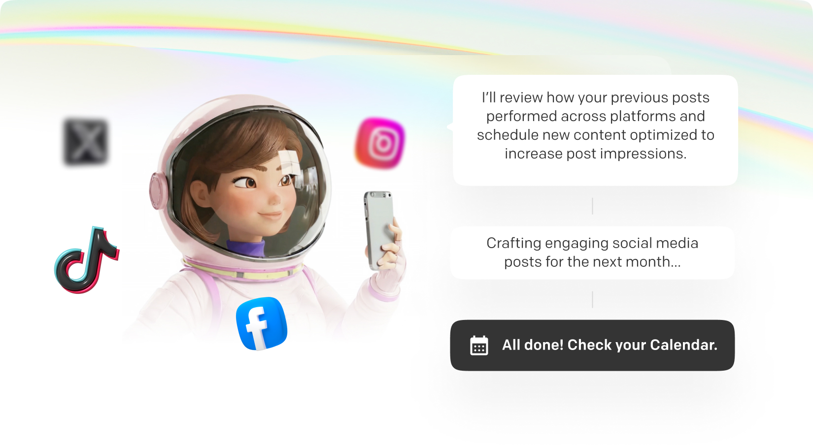 No solo texto: el agente puede crear publicaciones con recursos visuales y organizar campañas con consistencia. Ideal para: